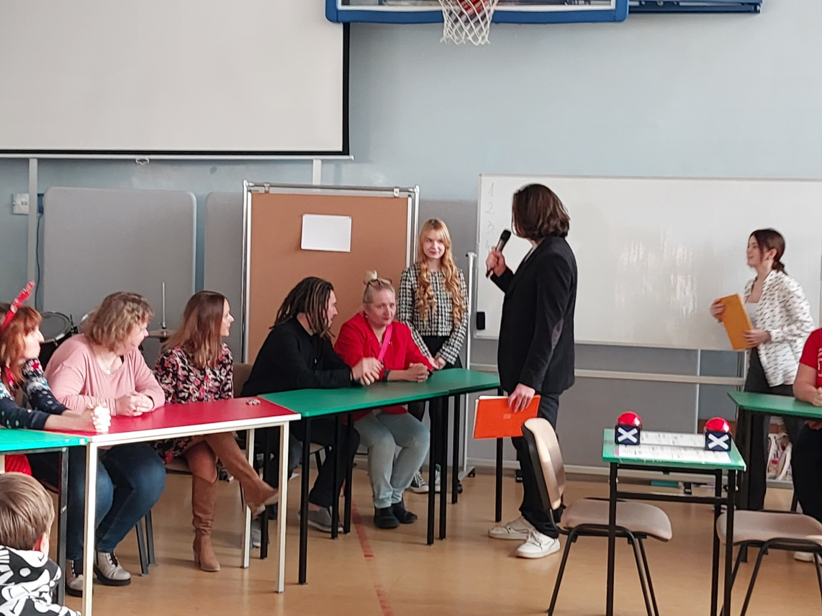 Przed świętami mieliśmy okazję obserwować zaciętą rywalizację o zwycięstwo w Familiadzie Nauczycielskiej. Dwie drużyny walczyły do końca o historyczne zwycięstwo w tym turnieju. Zwyciężyła drużyna Pani Joanny. Poniżej kilka zdjęć z tego wydarzenia.