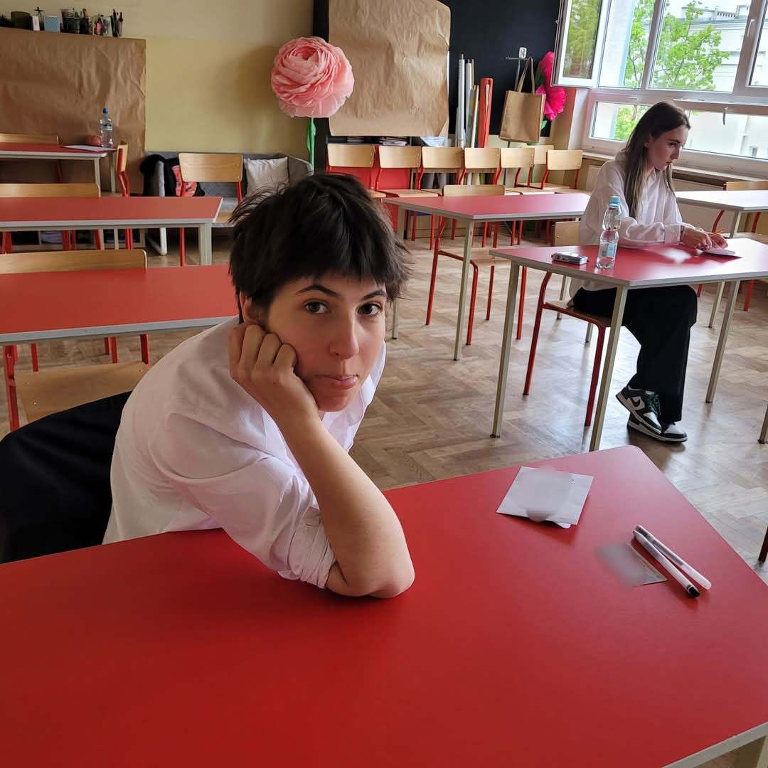10 maja, 2025 Matury 2025 Za nami bardzo intensywny czas dla naszych absolwentów. Mamy nadzieję, że na początku lipca wszyscy będziemy się cieszyć nie tylko ze zdanej matury ale i z bardzo dobrych wyników. Jeszcze raz gratulacje dla Maturzystów! Oczekiwanie Zdjęcie 4 z 4 Maturzystka oczekuje na egzamin