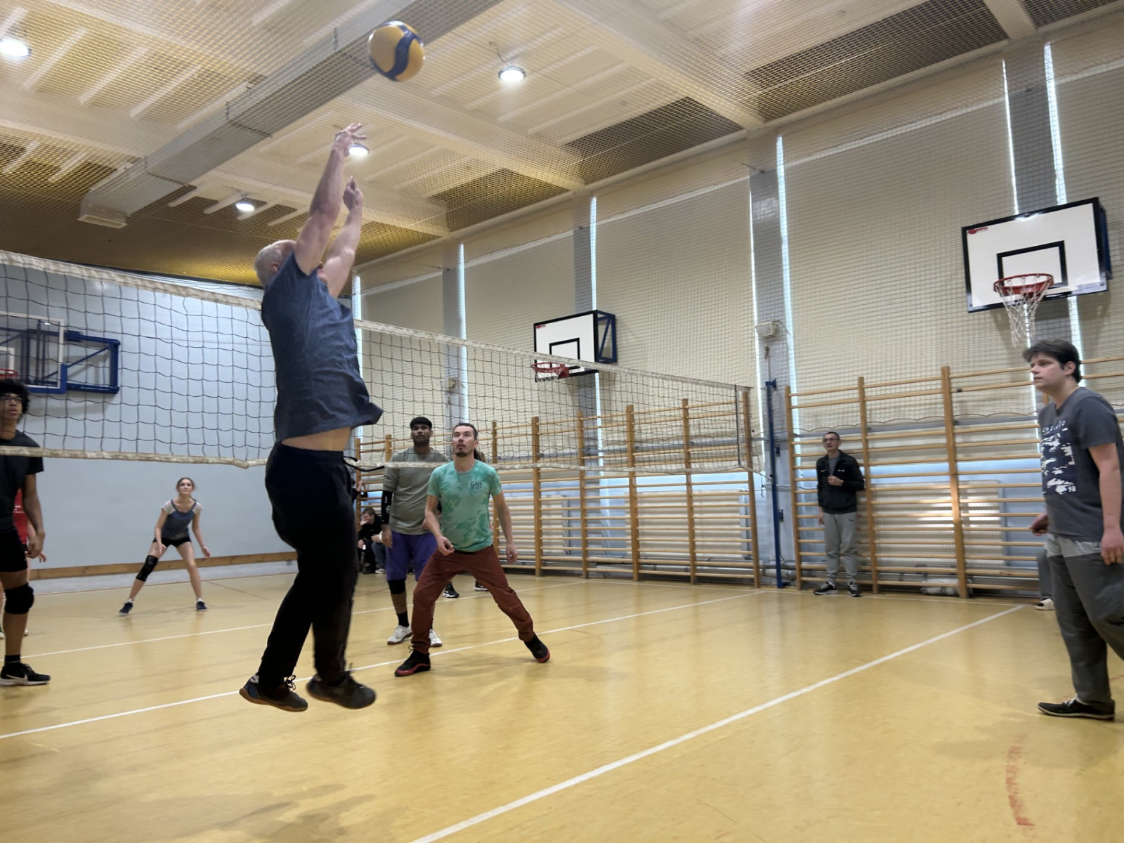 13 marca, 2025 Mecz w siatkówkę Podczas tygodnia zdrowia odbył się tradycyjny mecz uczniów i nauczycieli w siatkówkę. Tym razem po zaciętym spotkaniu uczniowie wygrali 3:2. Wystawka Zdjęcie 8 z 15 Pan Bogdan wystawia piłkę