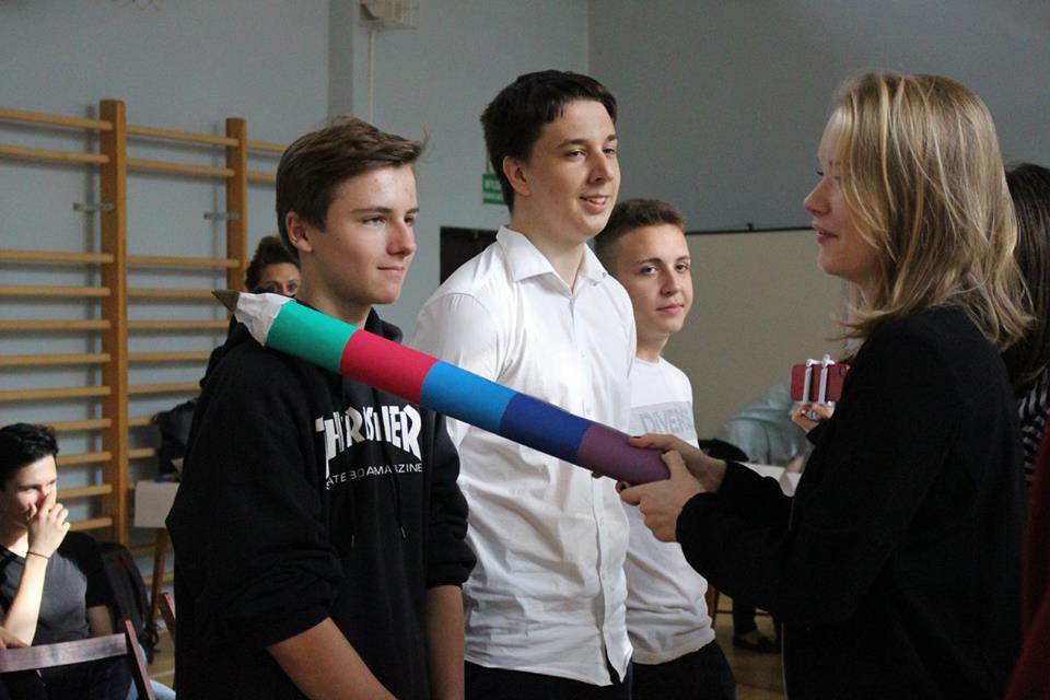 W piątek klasy pierwsze liceum miały debatę i otrzęsiny. Uczniowie klas ubrali się elegancko, lecz wygodnie. Debata dotyczyła tematu szkoły w przyszłości. Pierwszym zadaniem klas było narysowanie swoich wychowawczyń lewą ręką. Drugim zadaniem było stworzenie obręczy z kartki. W czasie rozwiązywania tego zadania jeden z uczniów musiał skakać na skakance. Kolejną próbą był test na spostrzegawczość. Ostatnie zadanie...