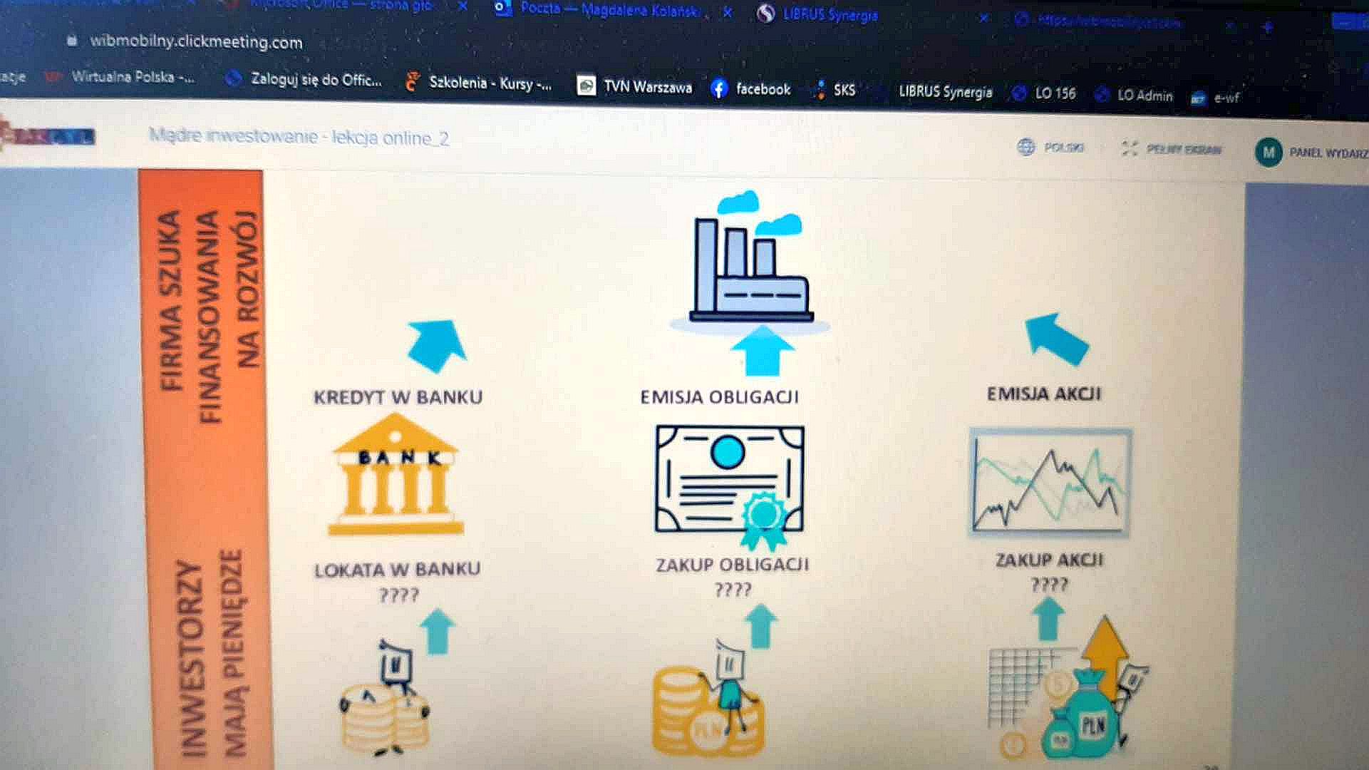 Klasy III B i D brały udział w webinarium organizowanym przez BAKCYL- Bankowcy dla Edukacji Finansowej Młodzieży. Tematem było „Mądre inwestowanie”. Poznawaliśmy różne rodzaje produktów finansowych oraz zasady inwestowania na giełdzie oraz znaczenie użytych w tym kontekście pojęć takich jak ryzyko, dochód, inwestycja, dywersyfikacja.