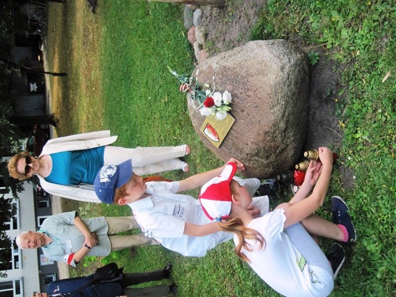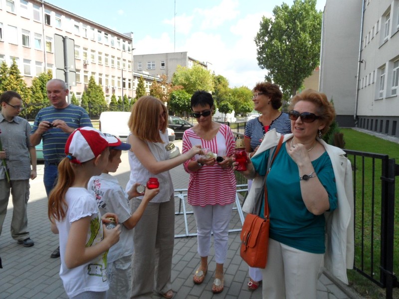 Jak co roku 01.08. o godzinie 12.00 zebraliśmy się pod naszą Tablicą Memoratywną, aby wspólne uczcić pamięć poległych w Powstaniu Warszawskim. Na spotkanie przybyli kombatanci - p. Piotr Łubieński, p. Franciszek Ukleja, nauczyciele, pracownicy administracyjni szkoły, uczniowie, absolwenci, rodziny uczniów i pracowników szkoły, mieszkańcy Sielc. Po serdecznym przywitaniu ( z niektórymi "Strażnikami Pamięci" spotykamy się tylko tego dnia!), p. Halina Niemiec przedstawiła krótki rys historyczny dotyczący powstania tablicy oraz opowiedziała o działalności bohaterów - harcerzy , których nazwiska są na niej umieszczone. Następnie złożyliśmy kwiaty i zapaliliśmy znicze. Pamięć poległych uczciliśmy minutą ciszy. O1. sierpnia stał się również okazją do uczczenia pamięci Rocha Dureckiego, który został zamordowany z Katyniu. Na terenie szkolnego ogródka znajduje się dąb poświęcony właśnie tej postaci. Na symbolicznym kamieniu, zawierającym tabliczkę informacyjną, również złożyliśmy kwiaty i zapaliliśmy znicze. Dziękujemy wszystkim, którzy przyszli na nasze spotkanie i uczcili pamięć poległych w Powstaniu Warszawskim. Spotkajmy się również za rok. opracowała Elżbieta Jędryszczak-Sznajder