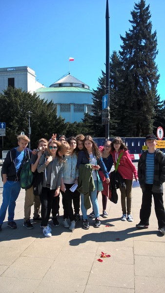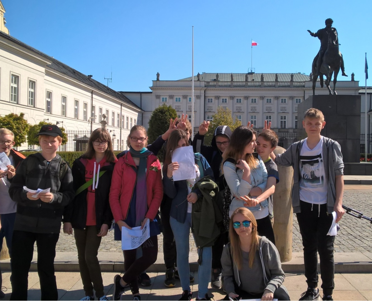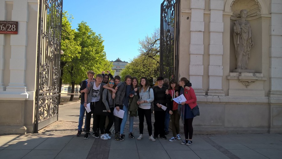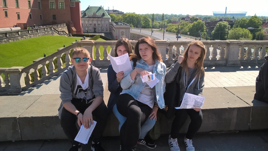 Piątego maja uczniowie klasy I A poznawali architekturę Traktu Królewskiego oraz ćwiczyli umiejętność korzystania z mapy. Trasa prowadziła od Placu Zamkowego do Łazienek, w których spotkaliśmy Joachima z You can dance.