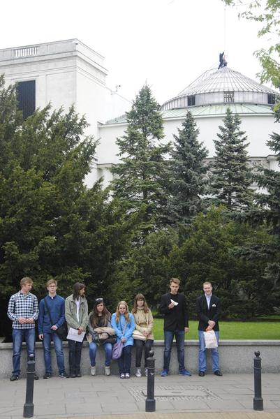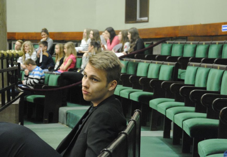 Dzień po pierwszej turze wyborów prezydenckich 3b wybrała się na wizytę do Sejmu. Podczas zwiedzania mieliśmy okazję zobaczyć piękną Salę Kolumnową i Salę Posiedzeń. Nasze miejsca znajdowały się tuż obok Loży Prezydenta.