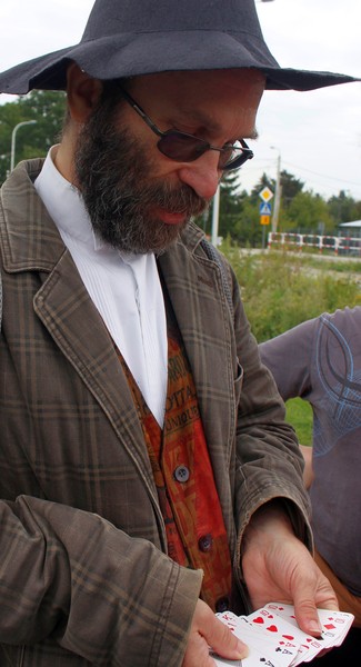 Drużyna Koła Warsawianistycznego brała w tę sobotę udział w grze miejskiej "Białołęka - podróż w czasie". Zaliczyliśmy 9 punktów w dzielnicy Białołęka (ściślej biorąc był to Tarchomin, Nowodwory i Henryków). Na murze kościoła św. Jakuba (Tarchomin, XVI w.) odkryliśmy tajemniczy napis, w ruinach willi Topolanka kilka napisów bynajmniej nie tajemniczych; nad Wisłą gigantyczną piaskownicę i parę efektownych roślin; w parku Henryków małpi gaj. A na marginesie historii dwóch bitew pod Białołęka poznalismy historię gier karcianych (tysiąca, preferansa, pikiety). Tworzone na poszczególnych punktach dzieła naszych rysowników (Janek i Łukasz) budziły w pełni uzasadniony podziw.