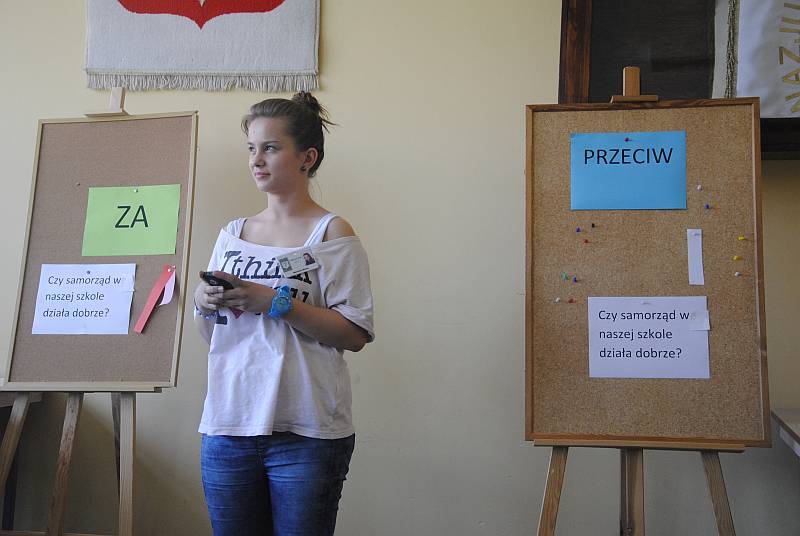 Zorganizowaliśmy po raz pierwszy debatę oksfordzką. Ten typ debaty wziął się z tradycji brytyjskiej - uniwersytetów, które miały własne kluby i brały udział w Ligach Debatanckich. Dla nas ta forma była nowością. Jak na pierwszy raz, poszło nam dobrze. Zdania publiczności co do tego, która drużyna ma rację były podzielone...Temat został wybrany przez uczniów - dotyczył tego, czy samorząd pracuje dobrze czy nie. Wnioski z dyskusji na pewno weźmiemy pod uwagę.