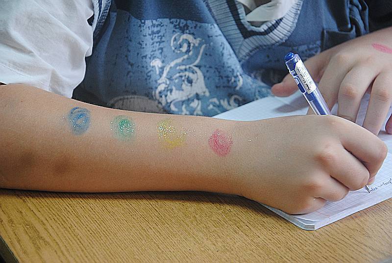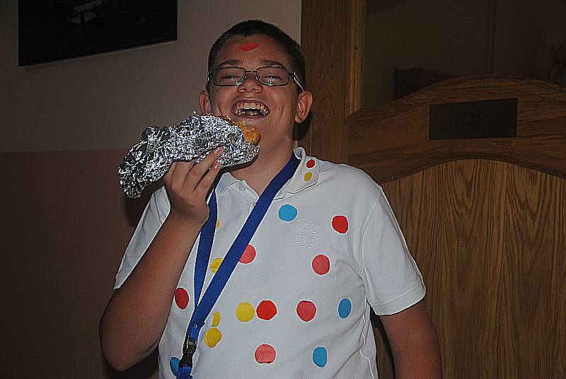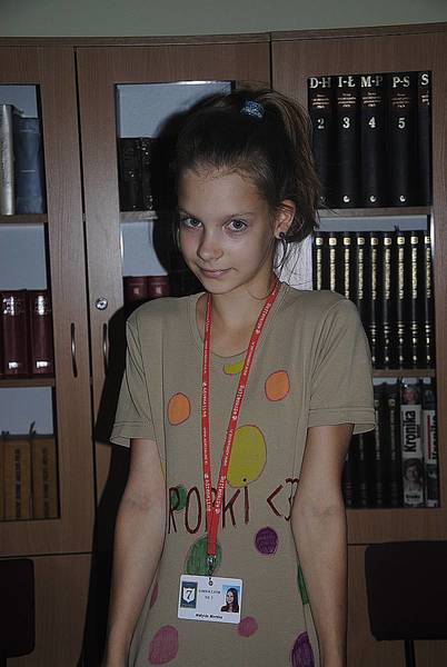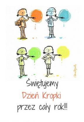 Postanowiliśmy wyjść naprzeciw pechowemu piątkowi 13 dnia miesiąca... Zorganizowaliśmy sympatyczną akcję Dzień Kropki, której międzynarodowe święto przypada 15 września. Były akcenty kropkowe na ubraniach (nawet skarpetach), niektórzy - jak Matylda- zaprojektowali swoje t-shirty. Inni wyglądali trochę jak dopadnięci przez groźną chorobę, zwłaszcza na rękach. Każda z klas wykonała tez rysunek, którego główny element miała stanowić kropka. Dziękujemy wszystkim za udział w akcji!