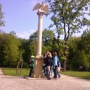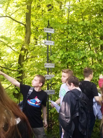 Po krótkim wprowadzeniu historycznym na temat pałacu i ogrodów, które przygotowała klasa Ia, uczniowie mieli za zadanie rozwiązać zagadki przyrodnicze. Niezbędne były umiejętności geograficzne, takie jak: posługiwanie się mapą, określanie kierunków świata. Pogoda i humory dopisały, czekamy na ocenę prac.