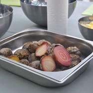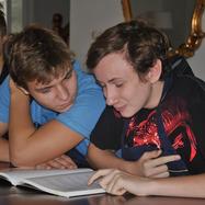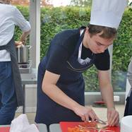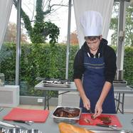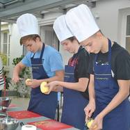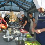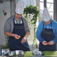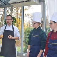 3a miała okazję gotować w kuchni pałacowej. Najpierw studiowaliśmy staropolskie przepisy na rybę i mięso. Potem przeszliśmy do kuchni, gdzie pod okiem zawodowego kucharza przygotowaliśmy dwudaniowy obiad. Poznaliśmy różne warzywa - w tym białe i żółte buraki, a także wężymorda. Uczyliśmy się rozpoznawać przyprawy. Następnie gotowaliśmy zupę tucholską, a na drugie danie - dorsza z kluseczkami i warzywami.
