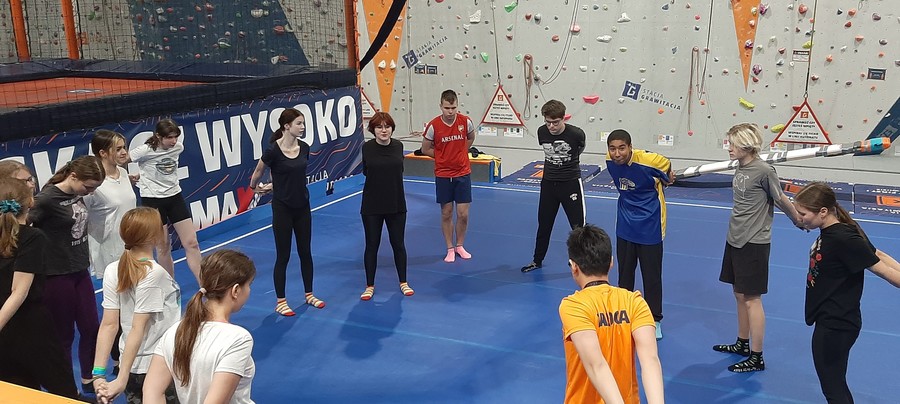 W dniu dzisiejszym klasa I c w ramach integracji zespołu klasowego brała udział w nietypowej lekcji wychowania fizycznego. Pod bacznym okiem wyspecjalizowanych instruktorów korzystali z zasobów wielkiej hali sportowej takich jak park trampolin, tor przeszkód Ninja, ścianka wspinaczkowa, park linowy i wiele innych. Zapraszam do fotorelacji...