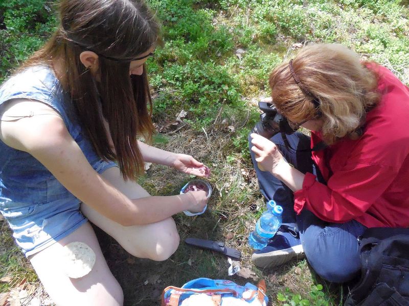 W maju miało nie być wycieczki do lasu, bo długie weekendy, Noc Muzeów i inne imprezy. Z drugiej strony – kwitnące konwalie, piękna pogoda i tak dalej... Poszliśmy do Kampinoskiego Parku Narodowego, na trasę, na której byliśmy już w zeszłym i zaprzeszłym roku: Truskaw - Kręta Droga - Zaborów Leśny - Truskaw. Na Krętej Drodze pani H. przeoczyła zakręt szlaku (zamiast uważać, słuchała prowadzonego przez Kasię wykładu z batmanologii), wskutek czego ominęliśmy pomnik powstańców styczniowych, ale do Zaborowa jakoś trafiliśmy. Ośmiorniczki przyniesione przez Agnieszkę i hiszpańskie anegdoty pani M-G dodały naszemu rajdowi południowej egzotyki.