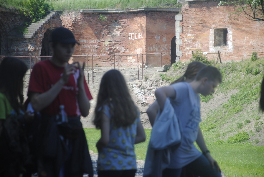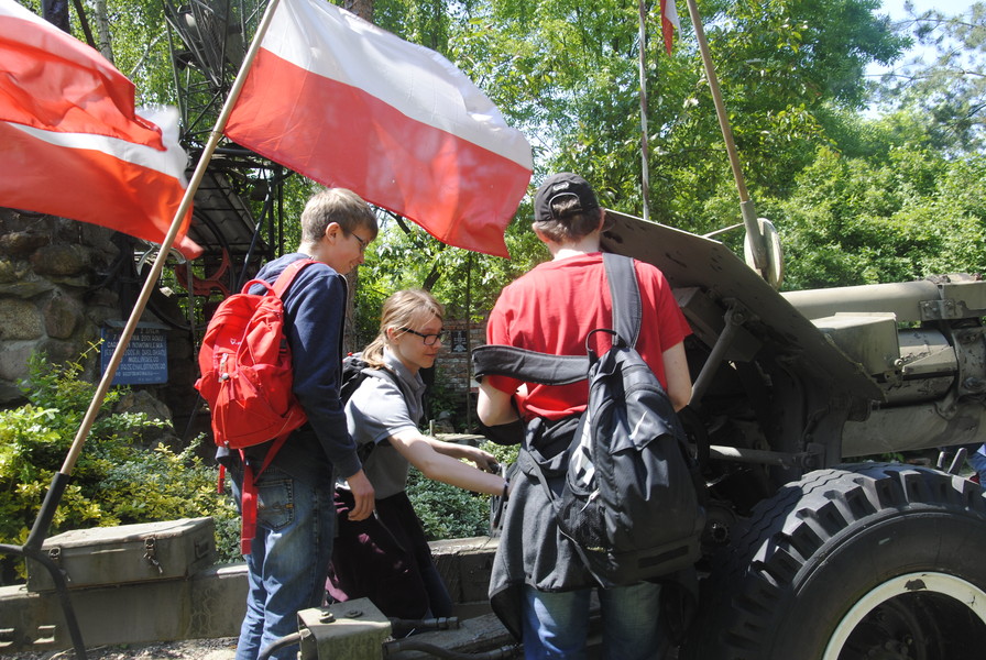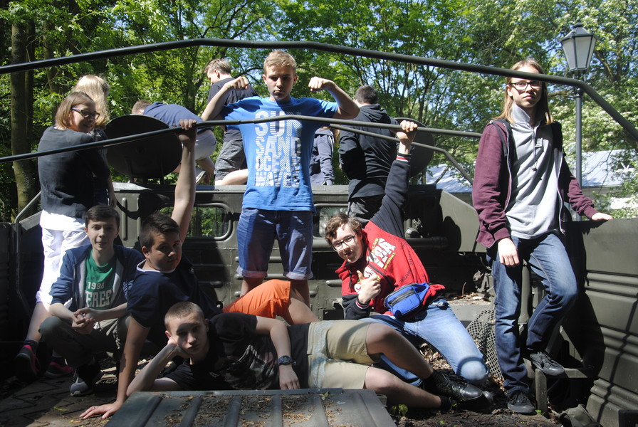 Klasy 2 A, 2B, 2C wybrały się w piękny majowy poniedziałek na wycieczkę do twierdzy Modlin. Szliśmy szlakiem białego nieźwiedzia - Baśki Murmańskiej - jedynego w historii białego niedźwiedzia, którzy był... żołnierzem! Kiedy zwiedzaliśmy podziemne forty, chłopakom nie jeden raz udało się wystraszyć dziewczyny. Prawie w komplecie wspięliśmy się na Twierdzę Modlin, skąd roztaczały się fantastyczne widoki na Wisłę. Jednak najwięcej frajdy dało nam wspinanie się na czołgi, samochody wojskowe i samoloty. Na zakończenie spędziliśmy czas przy wspólnym ognisku, a potem na lodach.