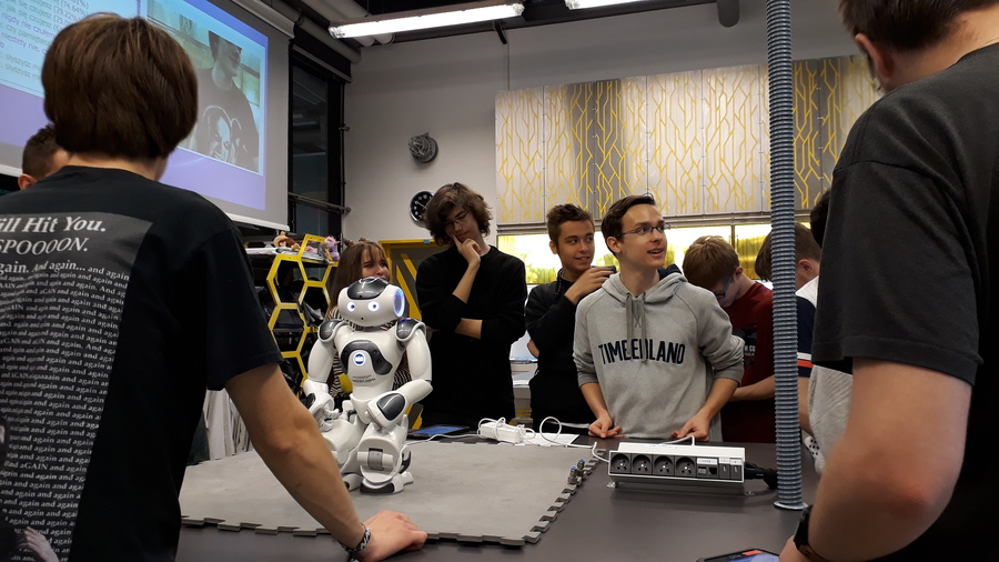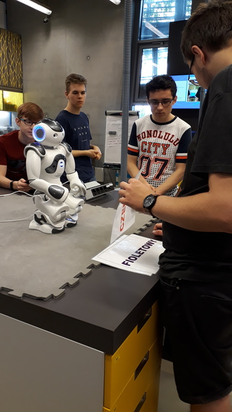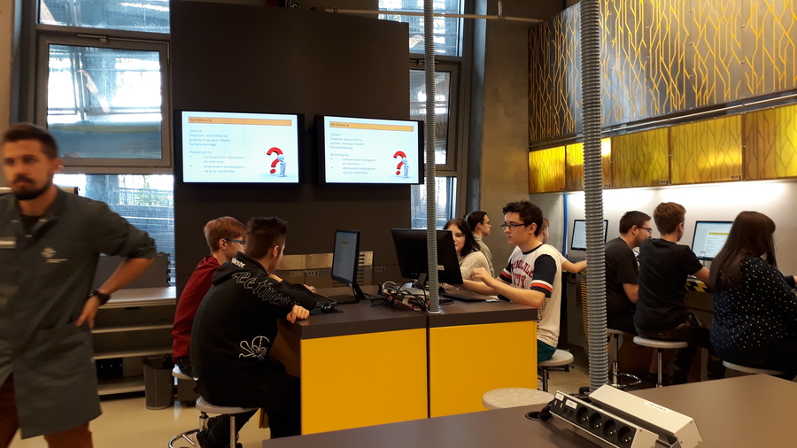 Klasy informatyczno-ekonomiczne były w Centrum Nauki Kopernik w laboratorium robotycznym na lekcji pt. "Chory algorytm". Podczas zajęć uczniowie zastanawiali się czy ludzie i roboty humanoidalne mają ze sobą coś wspólnego, poza wyglądem? Uczniowie klasy informatyczno-ekonomicznej wcielili się w role lekarzy i badali robota. Spojrzeli na niego z perspektywy neurologa, laryngologa, okulisty i ortopedy. Wspólnie zmierzyli parametry „życiowe” humanoida i zaprogramowali go zgodnie z zachowaniem Trzech Praw Robotyki.Zapraszamy do obejrzenia fotorelacji.