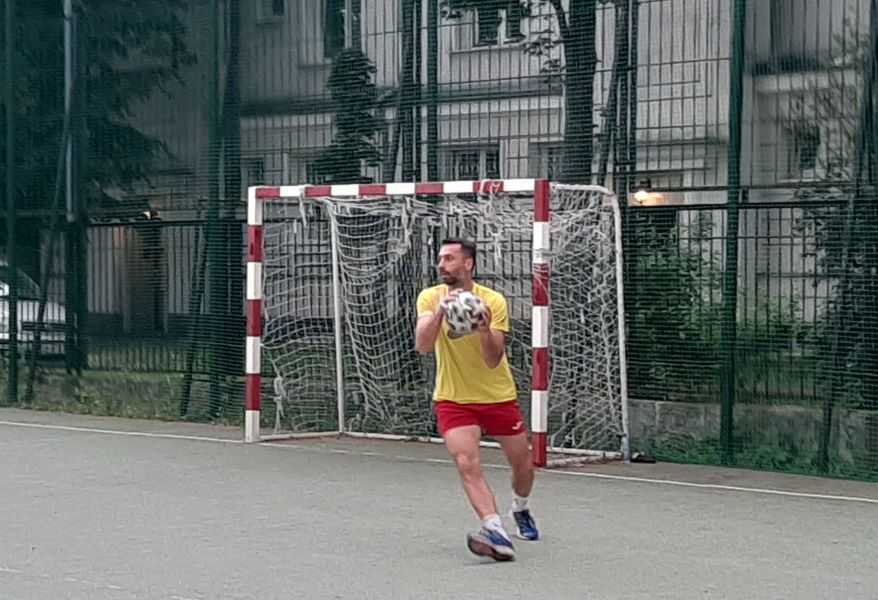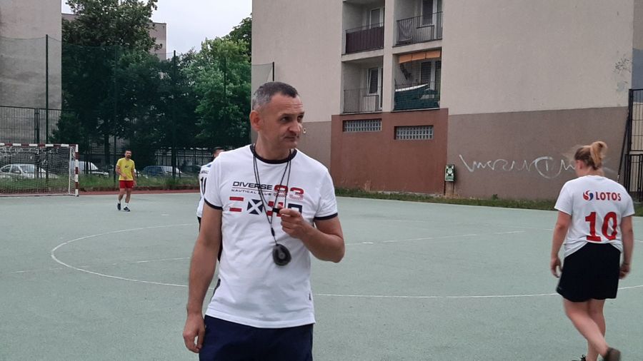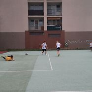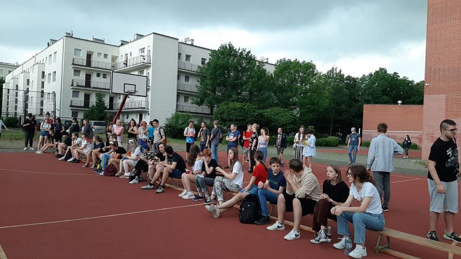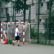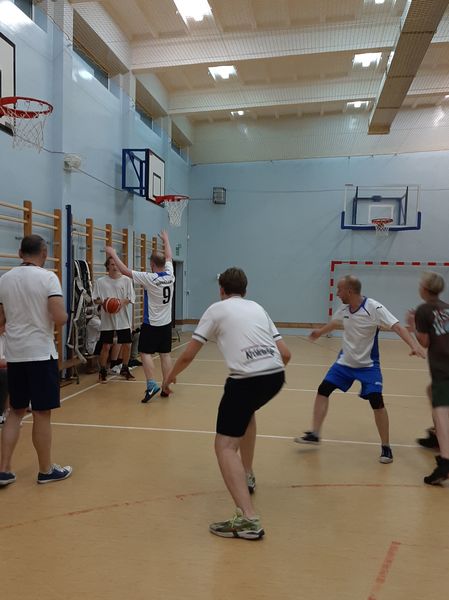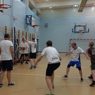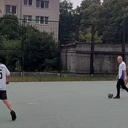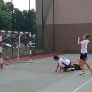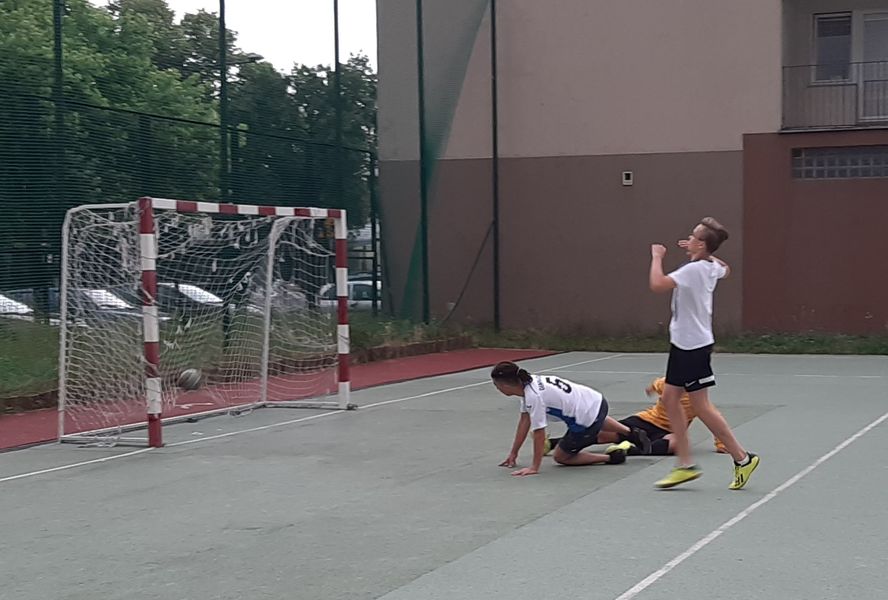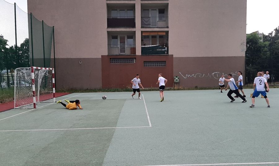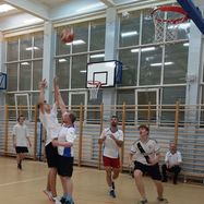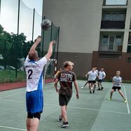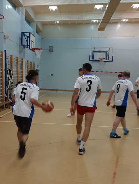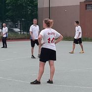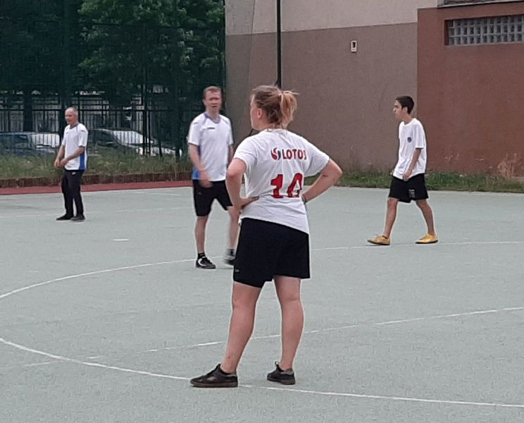 Dziś mogliśmy oglądać nawet dwa mecze: oprócz tradycyjnej piłki nożnej także mecz koszykówki. Drużyny walczyły zawzięcie, ale nauczycielom poszło lepiej: wygrali w obu dyscyplinach (piłka nożna 5:0, koszykówka 47:23).