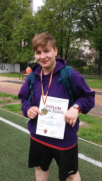 Lucyna Chwalińska z klasy II D została mistrzynią Mokotowa w pchnięciu kulą i również będzie reprezentowała naszą dzielnice na Mistrzostwach Warszawy.