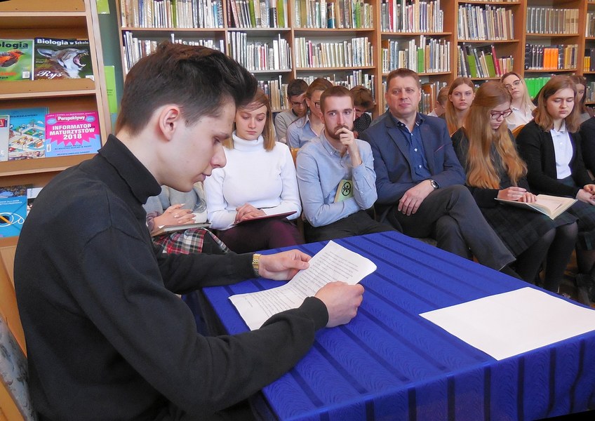 Hubert Gałus (2b) reprezentował szkołę 28 lutego w konkursie Mistrzowie Czytania 2019 w XLII LO im. Konopnickiej.