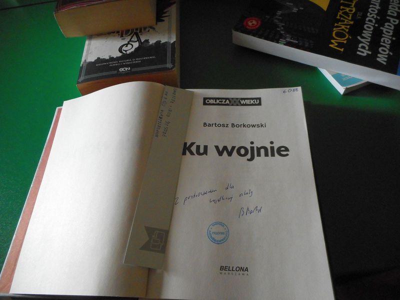 Właśnie ukazała się nowa książka pana Bartosza Borkowskiego: „Ku wojnie” – o tym, jak doszło do wybuchu II wojny światowej. Jest ona oparta na materiałach z prowadzonego przez niego kanału „Oblicza XX w.”, gdyż pan Borkowski, oprócz tego, że uczy u nas historii, jest też youtuberem i popularyzatorem tej nauki. Jest też współautorem monumentalnej publikacji „Polskie triumfy. 50 chwalebnych bitew z naszej historii”.