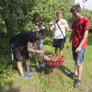 Ostatnia wycieczka miała być nad Zalew Zegrzyński, ale na miejscu stwierdziliśmy, że zamiast smażyć się na plaży wolimy iść do lasu szukać leśnego jeziorka Karaski. Po godzinie krążenia wokół znaleźliśmy je – jest piękne. Ostatecznie Zalew widzieliśmy tylko z okien autobusu, za to w drodze powrotnej odwiedziliśmy p. Marziano, która pokazała nam pracownię rzeźbiarską swojego Ojca, Romualda Grodzkiego (i poczęstowała kiełbaskami z grilla). Dziękujemy!