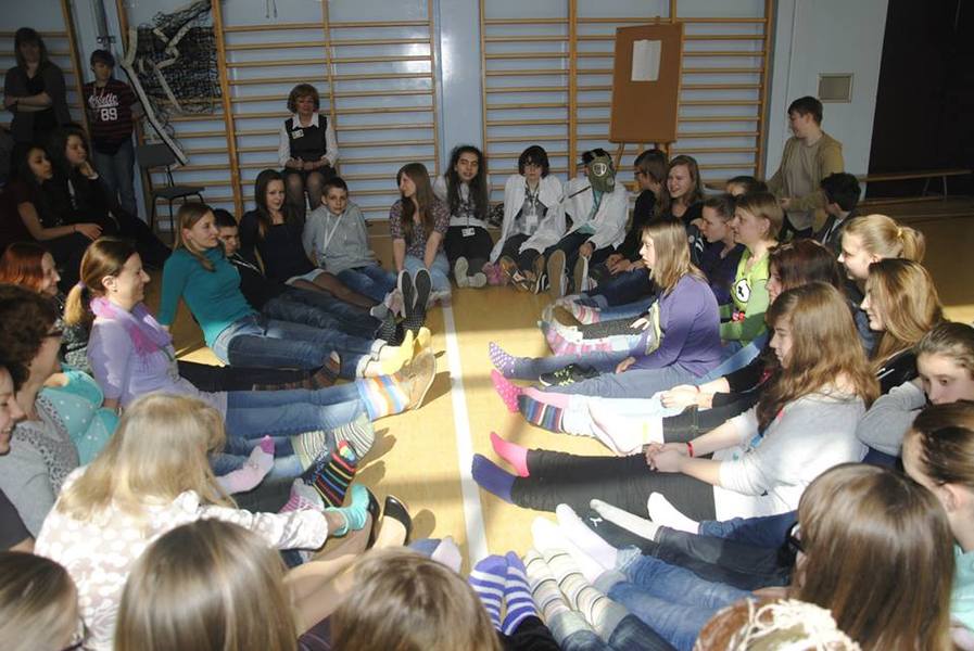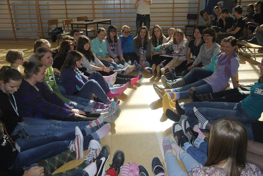 Dzień Wiosny znowu był okazją do tego, aby zaprezentować swoje talenty. Dużą atrakcją okazał się Top Model, w którym wystąpili uczniowie przebrani za nauczycieli i pracowników szkoły. Jak co roku obchodziliśmy też Dzień Osób z Zespołem Downa. specjalnie na tę okazję włożyliśmy kolorowe skarpetki, aby zaznaczyć dodatkowy, niepasujący do reszty chromosom. fot. Matylda Morska