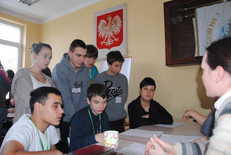 Podczas debaty "Czy uczniowie powinni oceniać nauczycieli?" zmierzyli się nauczyciele i uczniowie...W panelu uczestniczył też ekspert - Pani Danuta Sterna. Grupa uczniów przygotowywała się do tego zadania pod okiem trenerów. Za to nauczyciele zaufali swoim siłom. Podczas debaty aktywnie pracowała publiczność, która pomagała opracowywać argumenty obydwu drużynom. Początkowo uczniowie kibicowali swoim. Potem jednak zmienili zdanie. W podsumowaniu stwierdziliśmy, że ostateczną decyzję w sprawie oceniania nauczycieli przez uczniów podejmie samorząd podczas zebrania, gdyż wymaga to wiele pracy. Warto zauważyć, że uczniowie nie chcą oceniać nauczycieli stopniem, ale stosować informację zwrotną, która miałaby służyć ich rozwojowi.