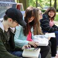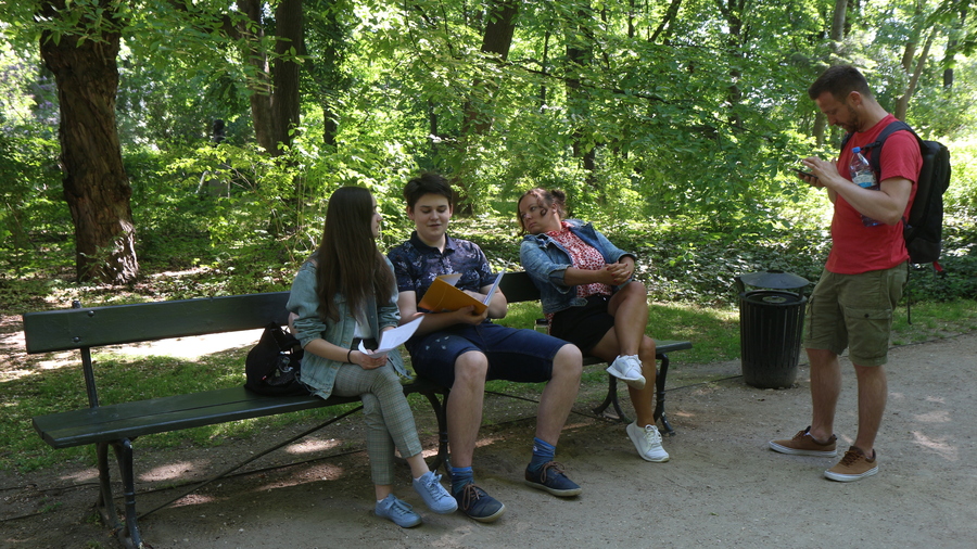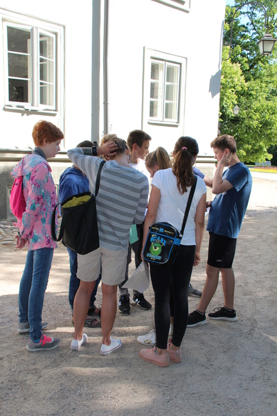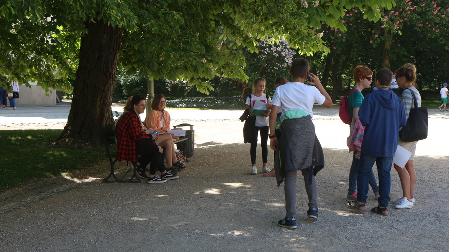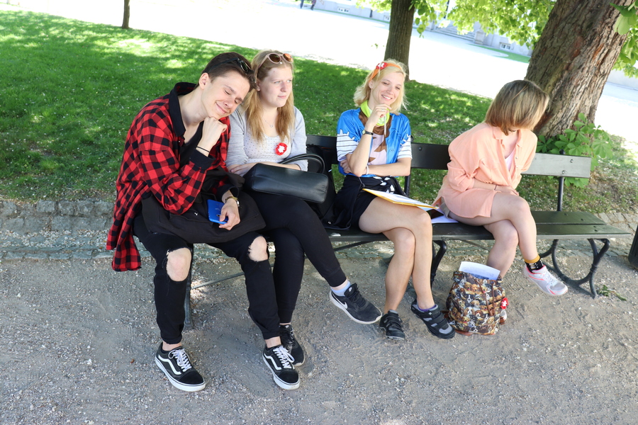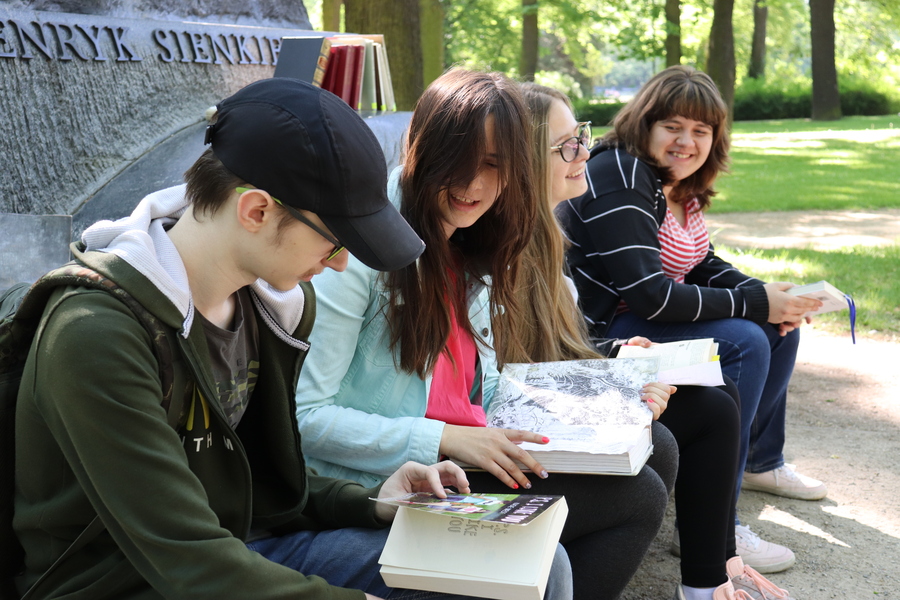 Na każdym punkcie uczniowie naszego Liceum byli pomocnikami naszych gości. Można było ich rozpoznać po czytaniu książki, słuchaniu muzyki, biało-czerwonym kotylionie, stroju damy dworu itp. Na drużyny czekały zadania z wiedzy, czytania, słuchania muzyki, kreatywności, zdolności fotograficznych.