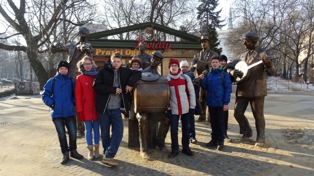 28 stycznia Koło Przyjaciół Warszawy wybrało się na starą Pragę i jej najbardziej charakterystyczną ulicę - Ząbkowską. Naszym celem było sprawdzenie na czym polega projekt rewitalizacji starej zabudowy ulicy. Na początku Ząbkowskiej powitały nas niebieskie Praskie Aniołki i największy mural Europy. Na trasie zaglądaliśmy na stare i nowe podwórka. Na każde wchodziło się charakterystyczną bramą, a wewnątrz wyróżniała się błękitna kapliczka. Najbardziej ubawiły nas nazwy małych kawiarenek. Odwiedziliśmy też Muzeum Drukarstwa, gdzie zobaczyliśmy, jak dawniej drukowało się ilustracje i książki. Poznaliśmy na czym polegała żmudna praca zecera (zgadnijcie czym zajmował się zecer). Na kilka godzin znaleźliśmy się w świecie starej Warszawy, który czasami widzimy tylko na filmach. Wycieczkę zakończyliśmy przy pomniku Praskiej Kapeli Podwórkowej, oczywiście odsłuchaliśmy a nawet odśpiewaliśmy jedną z piosenek folkoru warszawskiego. Zdjęcia wykonywali Janek Żyżyński i Wojtek Jagiełowicz.