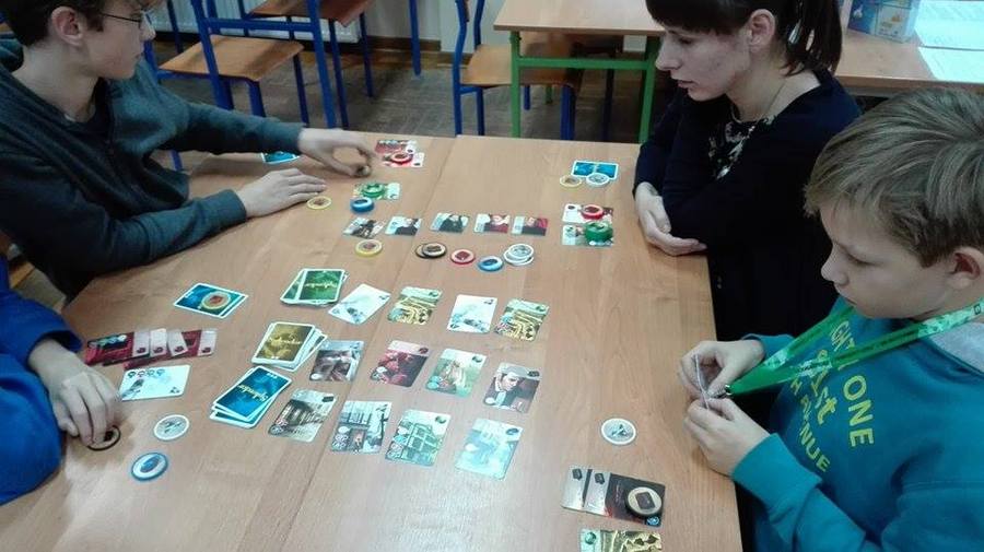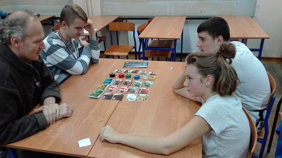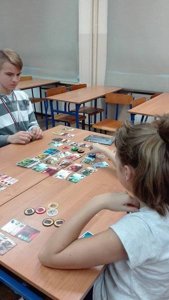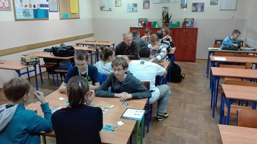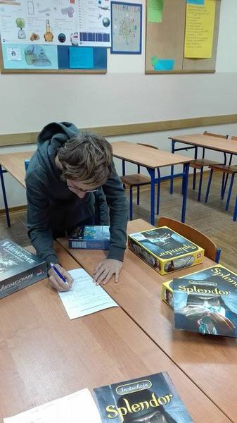 26 października o godz. 15 odbyły się w naszej szkole eliminacje do Mistrzostw Polski w grze "Splendor". To trudna, lecz bardzo wciągająca gra strategiczna. Uczestnicy wcielają się bowiem w rolę renesansowych kupców i próbują nabyć cenne klejnoty. Nasi uczniowie mogli zmierzyć się z profesjonalistami, którzy niemal zawodowo grają w gry planszowe. Zwycięzcą okazał się Alan z klasy 1b. Gratulujemy!