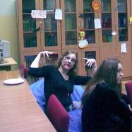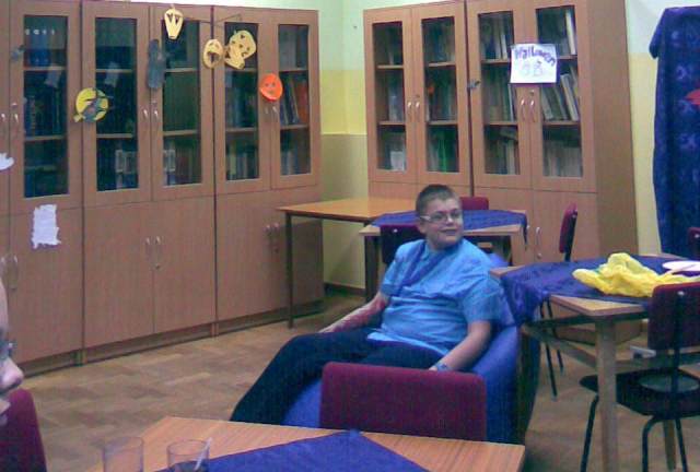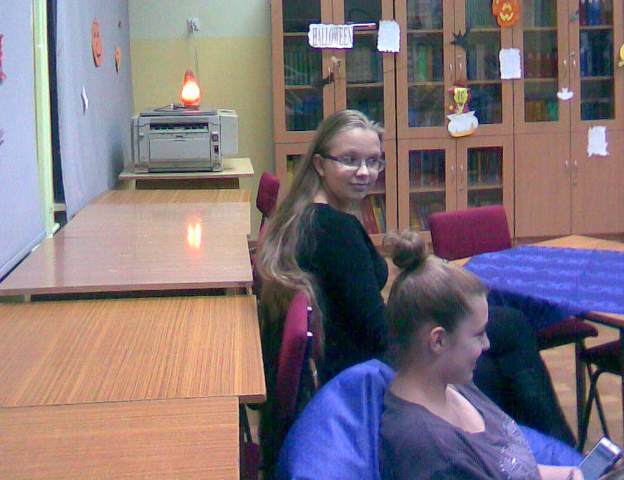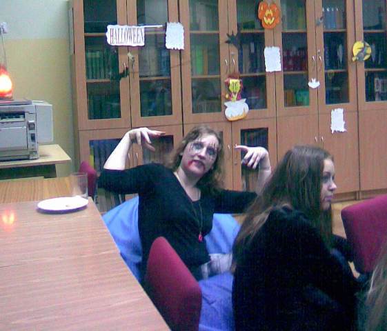 W bibliotece tłoczno i wesoło! Pierwszy po wakacjach wtorek przeznaczyliśmy na spotkanie z ... Halloween. Bawiliśmy się znakomicie, były zabawy i konkursy. Wieczorek okrasiły przyniesione smakołyki i gorąca herbata. Potem skupiliśmy się na oglądaniu filmu Tima Burtona „Sok z żuka”. Dziękujemy wszystkim uczniom naszej szkoły a także absolwentom. Do zobaczenia za miesiąc! Diana Janiec-Mirosławska Renata Raczkowska