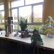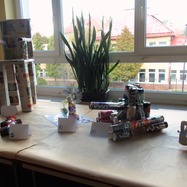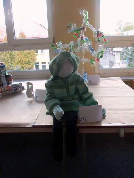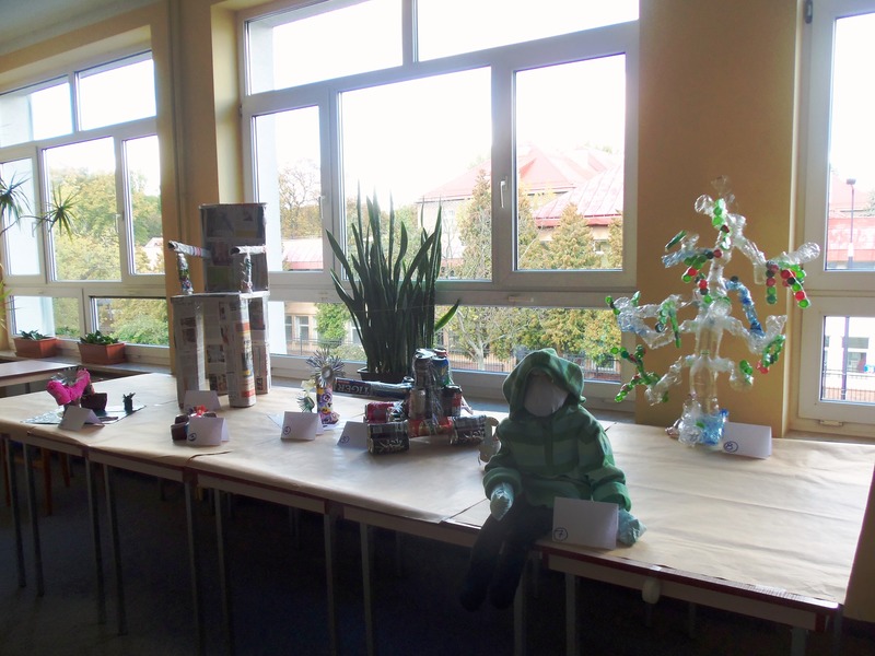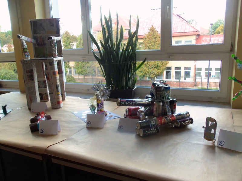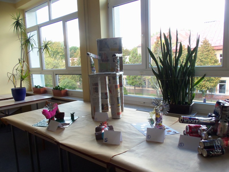 - W tym samym czasie klasy drugie i trzecie wykonywały rzeźby z materiałów recyklingowanych ( każda klasa losowała z czego będzie robić "rzeźbę").