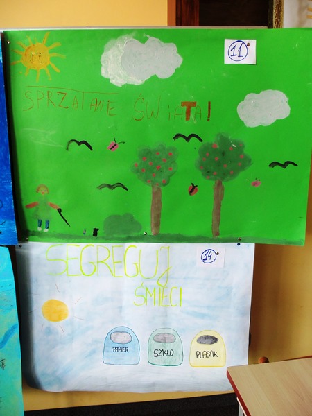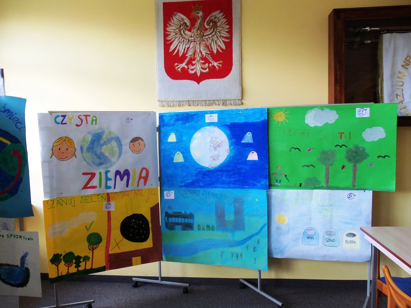 - Przez cały wrzesień uczniowie klas pierwszych projektowali i rysowali plakaty promujące akcję "Sprzątanie Świata" .