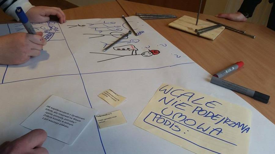Nasz Samorząd zakończył właśnie trwające ponad 40 godzin szkolenie. Wszystko po to, aby jeszcze lepiej organizować pracę w ramach zadań SU. W czasie ostatnich zadań wbijaliśmy gwoździe.... a także tworzyliśmy plakaty obrazujące nasze ostatnie działania. Jesteśmy pełni zapału, mamy mnóstwo pomysłów, wracamy z dobrą energią! - tak podsumowują zajęcia Mateusz i Nastka.