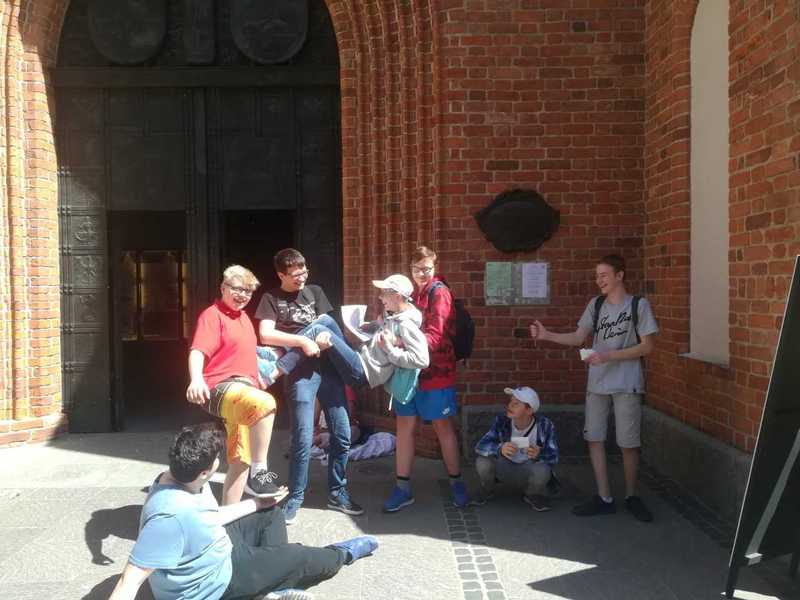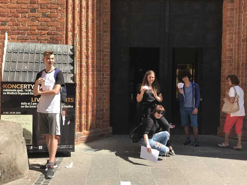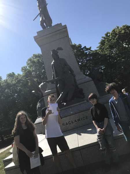 Na każdym punkcie czekały na uczestników zadania do wykonania, gry dydaktyczne i terenowe. Najwięcej problemów klasom 2 sprawiła inscenizacja obrazu Matejki „Uchwalenie Konstytucji 3 maja”, choć dzielnie próbowali nieść na ramionach Marszałka Stanisława Małachowskiego. Klasom trzecim nie udało się rozpoznać orłów legionowych i strzeleckich umieszczonych na pomniku Marszałka Józefa Piłsudskiego, ale za to wszystkie grupy świetnie poradziły sobie z rozpoznaniem odznaczeń wojennych umieszczonych na Grobie Nieznanego Żołnierza i zrobiły pamiątkowe fotki z kosynierem z pomnika Tadeusza Kościuszki.