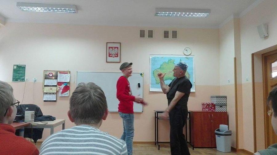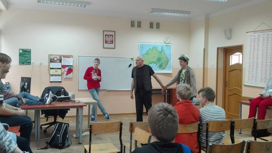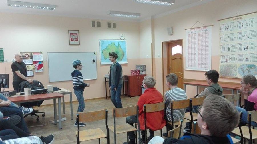 W poniedziałek i wtorek pierwszoklasiści mieli okazję spotkać się z panem Waldemarem Obłozą, słynnym aktorem teatralnym i filmowym. Uczniowie przy okazji wykładu o "czwartej ścianie" w teatrze, mogli wejść w różne role i zademonstrować swój talent aktorski. Najodważniejszym gratulujemy!