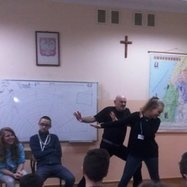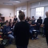 Uczniowie klas pierwszych wzięli udział w warsztatach teatralnych ze znanym aktorem... Pan Waldemar Obłoza przybliżył nam historię teatru, od starożytności do renesansu. Uczniowie odgrywali sceny, wcielali się w role anioła, diabła, grzeszników, kochanków... Na koniec były wspólne zdjęcia i autografy.