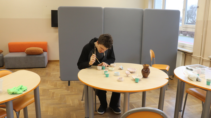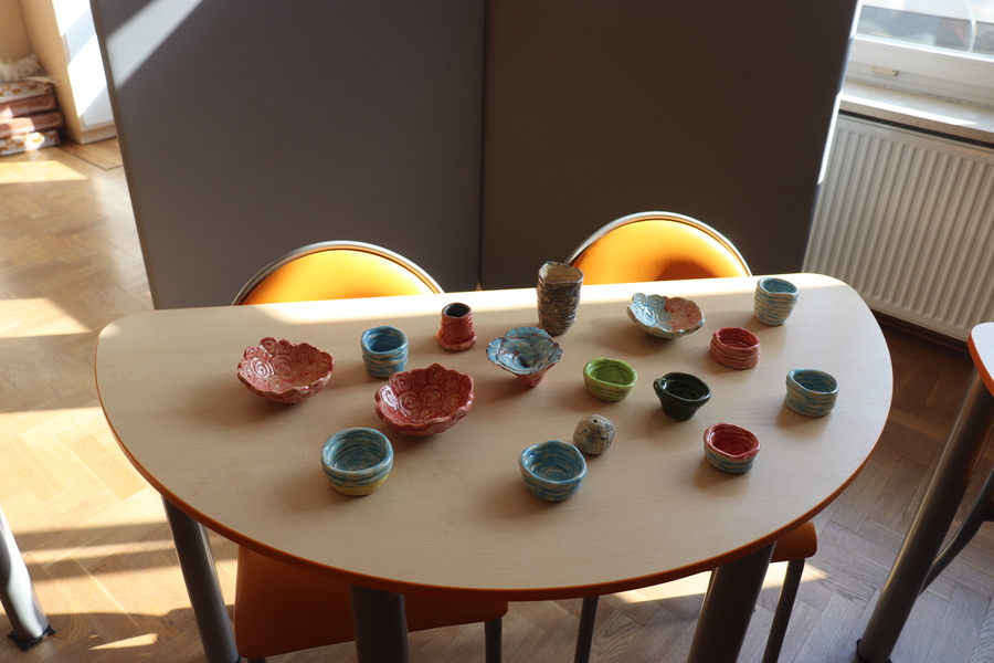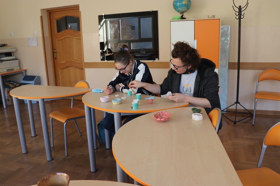 Podczas zajęć rewalidacyjnych usprawniających funkcje percepcyjno-motoryczne uczniowie mają możliwość ćwiczyć koncentrację uwagi, skupienie oraz precyzję wykonania określonej formy. Dzieje się to poprzez konkretne działania manualne - wytwarzając proste przedmioty ceramiczne z gliny, nakładając specjalne farby barwiące oraz szkliwo.