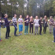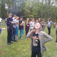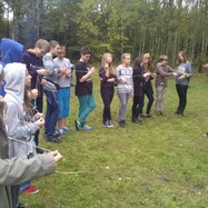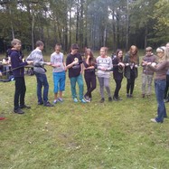 Piękne jesienne chwile klasy 1c i 1d postanowiły spędzić na świeżym powietrzu. Wybraliśmy się więc do Mokrzyc Włościańskich niedaleko Nasielska. Najpierw przejażdżka kolejami mazowieckimi, potem długi spacer i wreszcie jesteśmy w gospodarstwie agroturystycznym. Po krótkim odpoczynku…ognisko, potem gry i zabawy. I tu niespodzianka! Ponieważ zbliża się Dzień godności, postanowiliśmy stworzyć „sieć współzależności”. Rzeczywiście, istnieje między nami więź – taka mocna : sznurkowo-kordonkowa! Niestety czas mijał bardzo szybko i trzeba było wrócić do Warszawy! Szkoda, ze byliśmy razem tak krótko!
