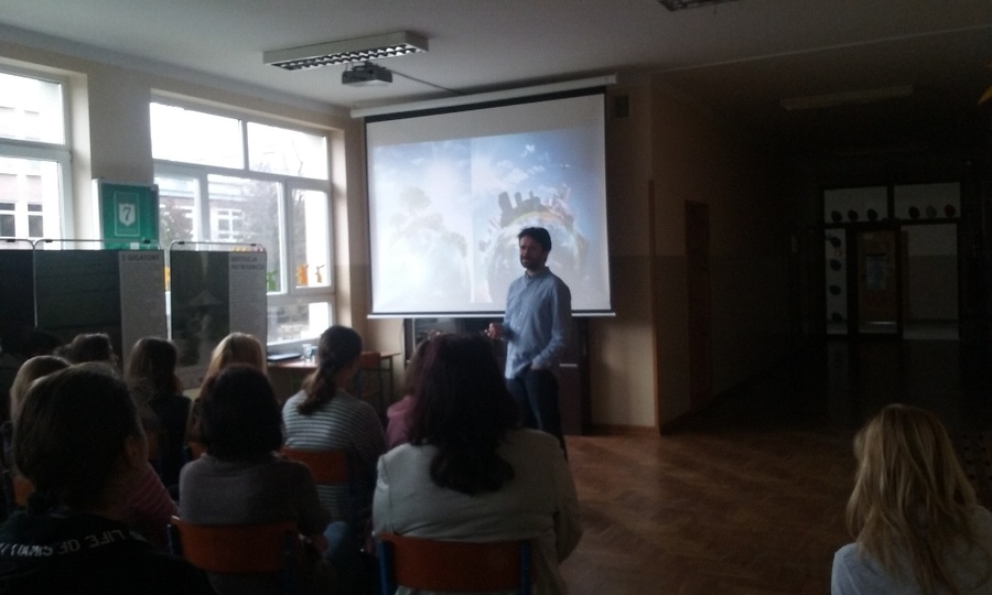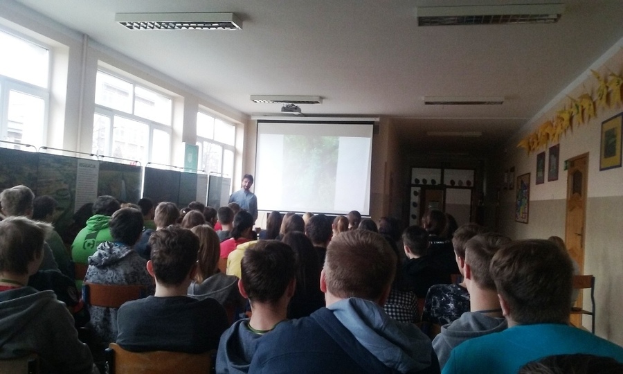 Dziś klasy 3 miały okazję wysłuchać wykładu p. Wiktora Kotowskiego poświęconego ochronie mokradeł i naturalnego środowiska. Hasło przewodnie to "Musimy (my, młodzież) zmienić swoje postępowanie, bo inaczej w najbliższym czasie grozi nam zagłada ekologiczna".