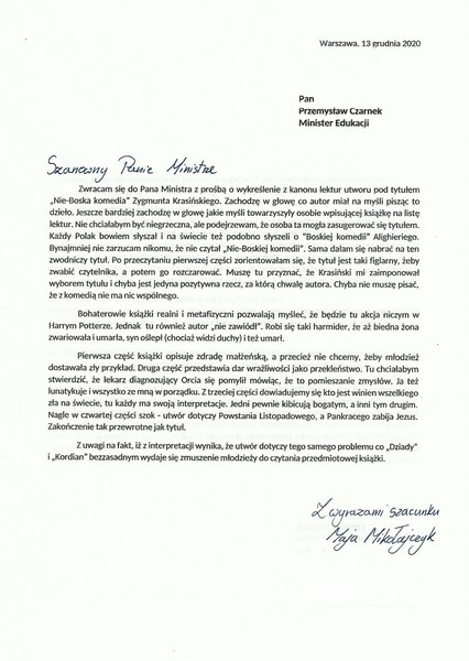 - Drugą otrzymuje Maja z kl. 2ap za pełną pasji krytykę "Nie-Boskiej Komedii" i kpiarsko urzędową formę.