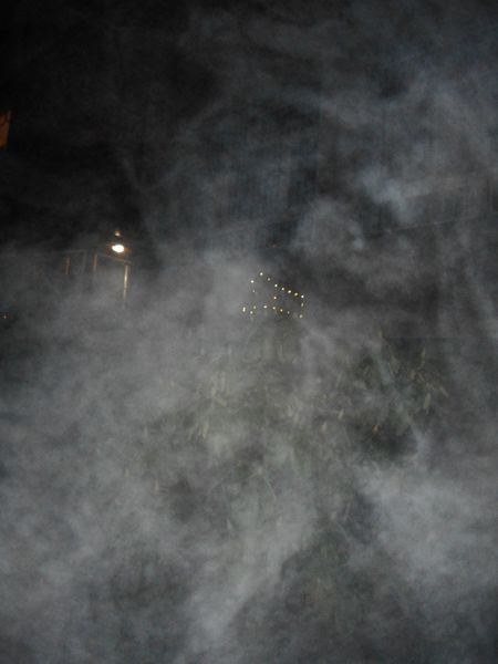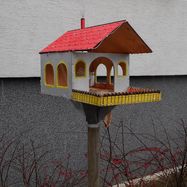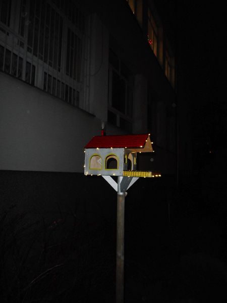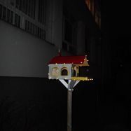 [miniatura: nocne zdjęcie karmnika, otoczonego światełkami LED]