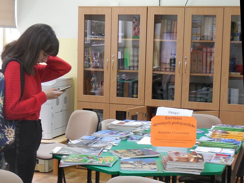 Zachęcam do delikatnego traktowania podręczników z myślą o przyszłorocznym kiermaszu. Planujemy zorganizować go inaczej, bez pośrednictwa biblioteki. Trwałby tylko dwa dni...