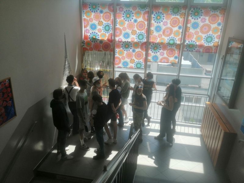 [miniatura: grupa uczniów obserwująca zaćmienie przy oknie zaciemnionym folią]